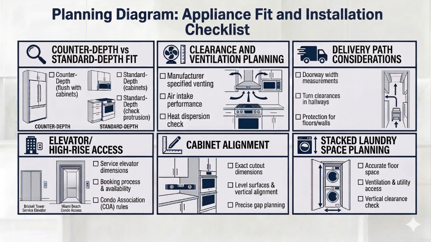 Even a well-designed appliance package can create problems if the fit is wrong. In Miami, this matters even more because many projects involve compact layouts, high-rise delivery conditions, and detailed design expectations.